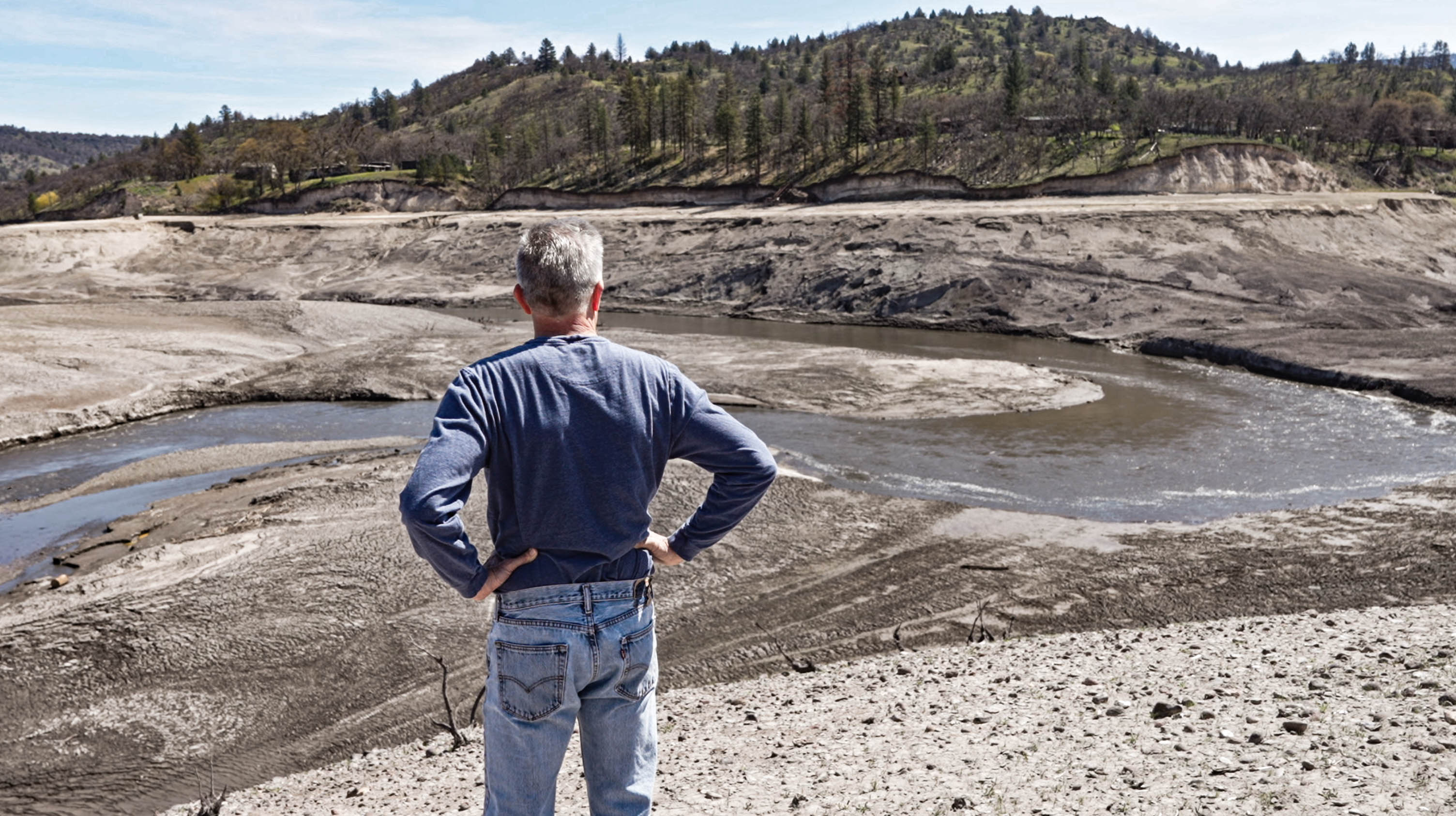 After the lake had completely drained, Wardlaw carefully ventured onto the lakebed. "There's no use in saying anything now, I just have to accept the new Klamath River, accept that the lake which has been with me for 54 years is gone."