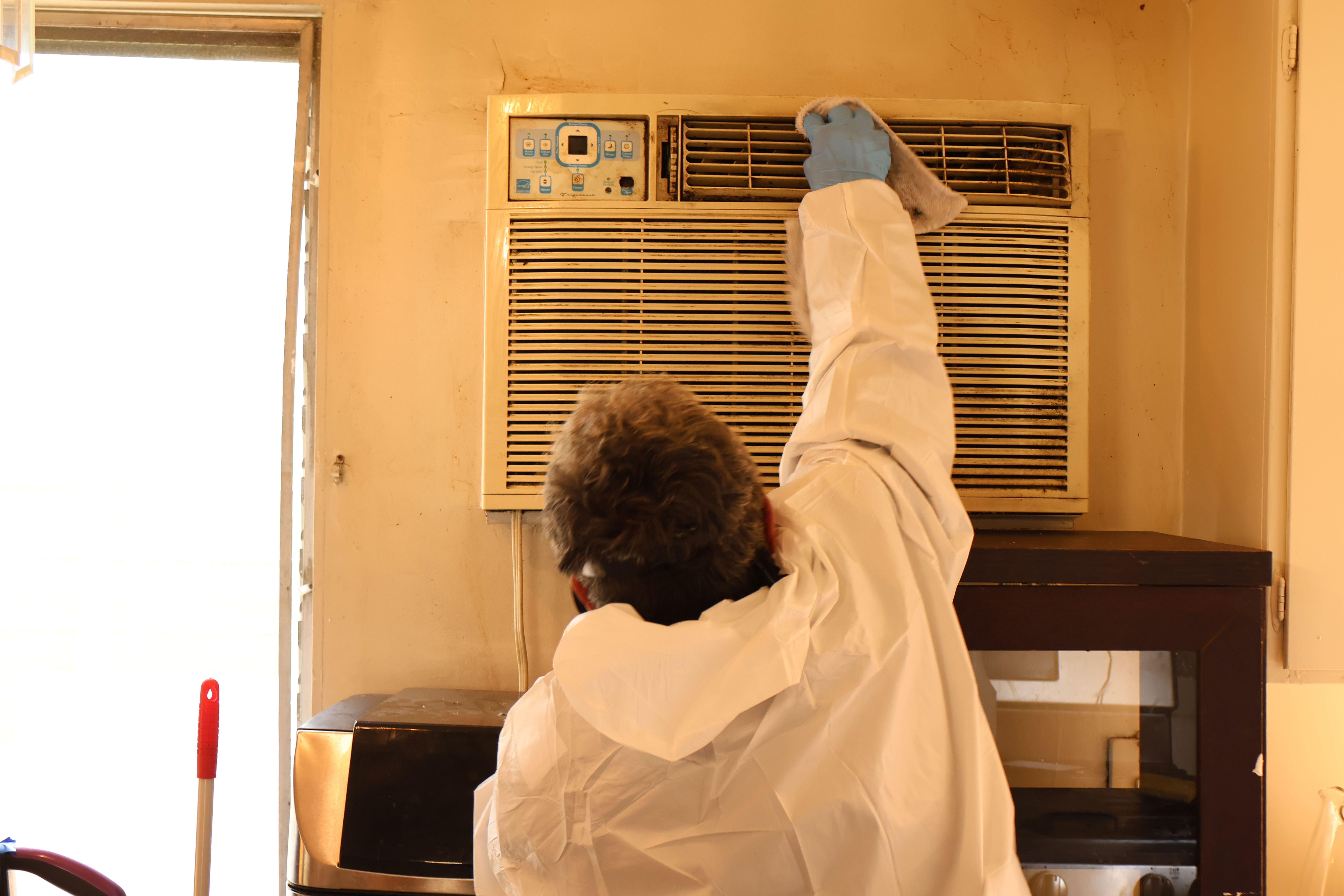 Stranded by endless waiting for her landlord's remediation schedule, Dominique eventually decided to clean herself. "I honestly just want to go back home," she said, "My family needs their home back."