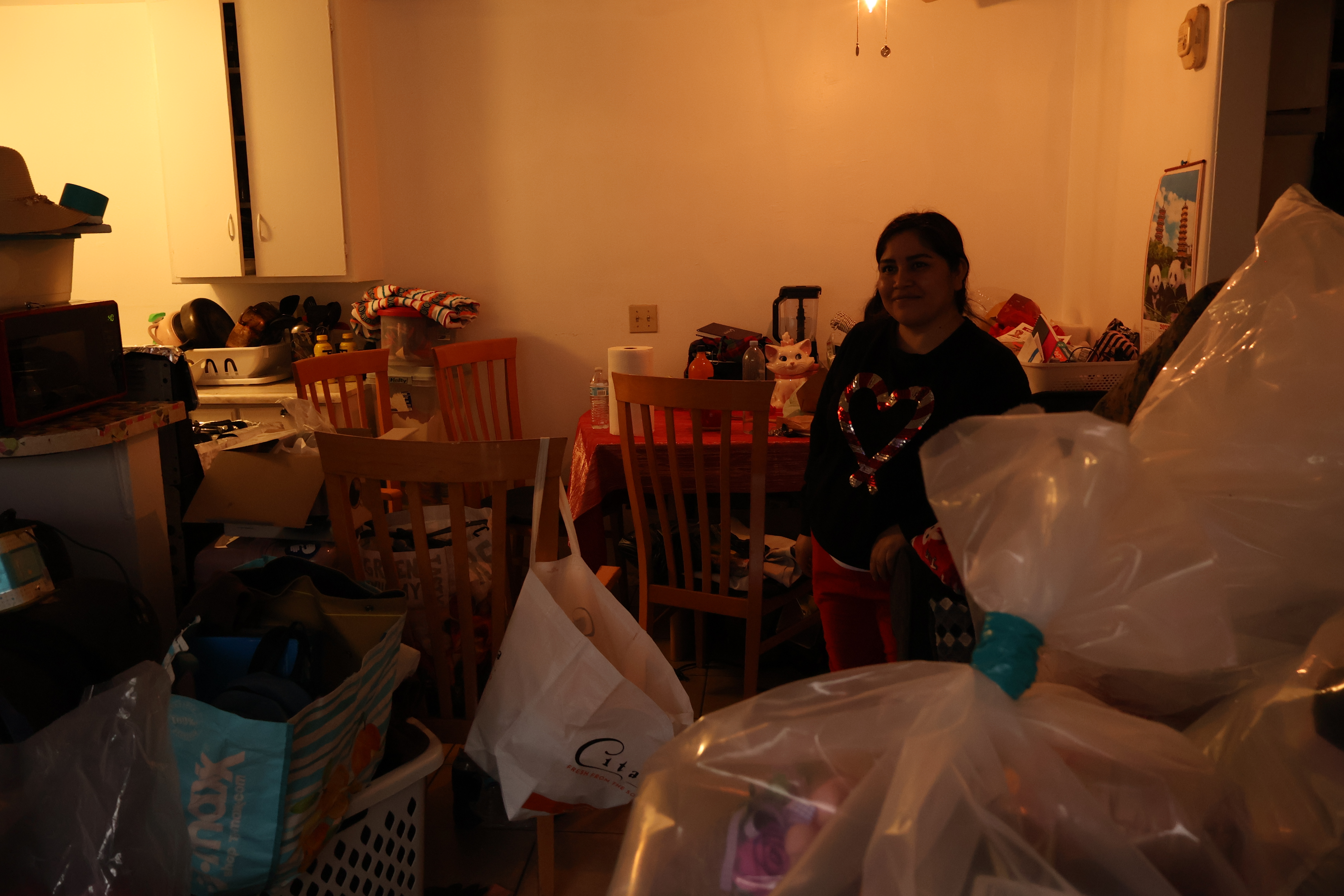 The living space of Zoela Ramirez, one of the tenants of the apartment, was filled with all kinds of items that needed to be cleaned. (Chieh-Yu, Lee/Annenberg Media)