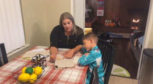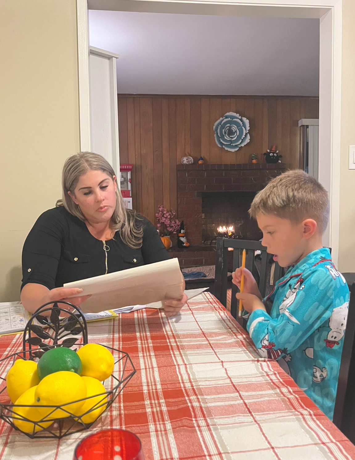 Kris and her son after dinner.