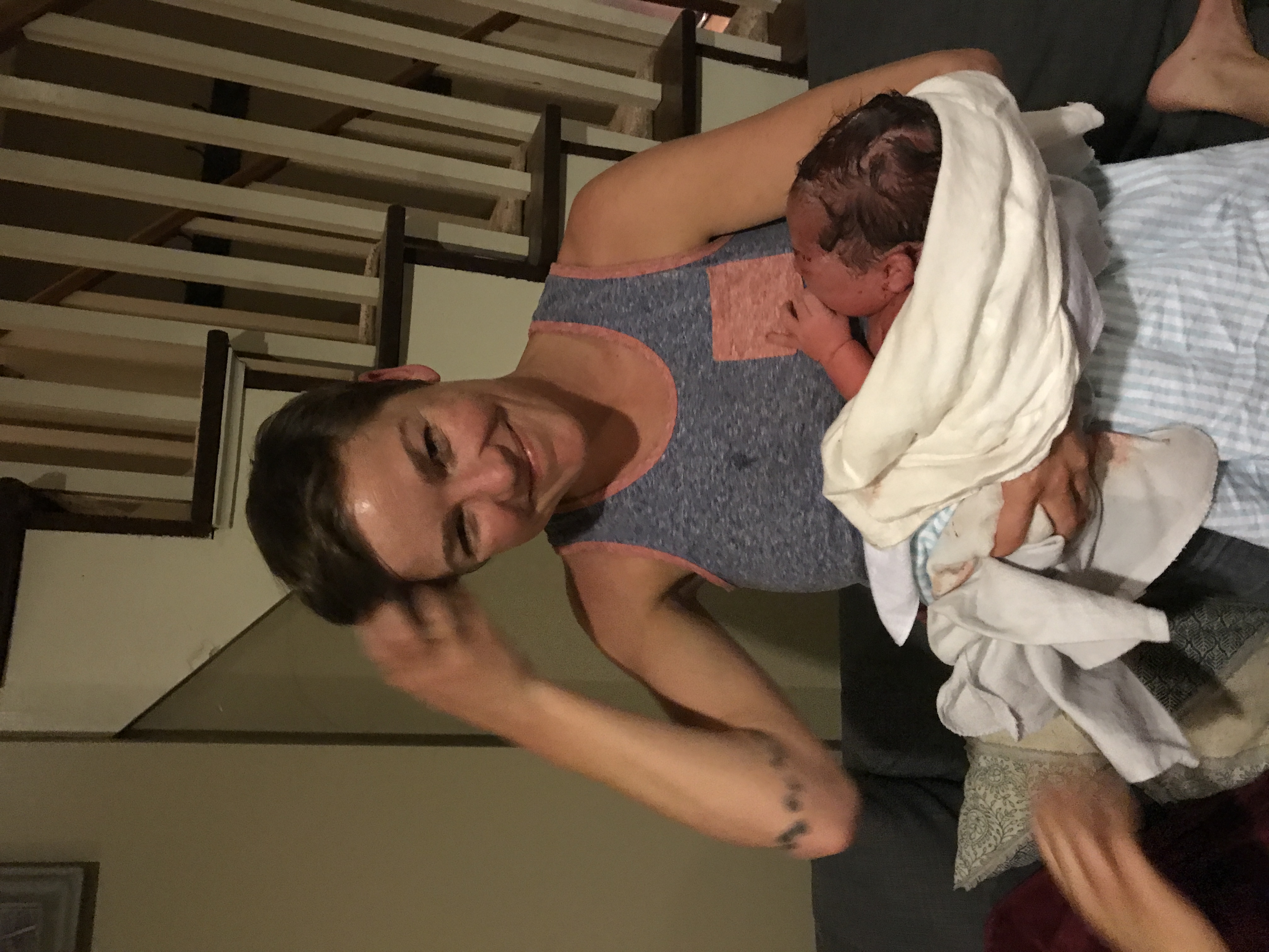 The moment the baby’s head poked out, the midwives rushed Meg over to Jocelyn, who was sitting over a birthing stool, to help deliver.