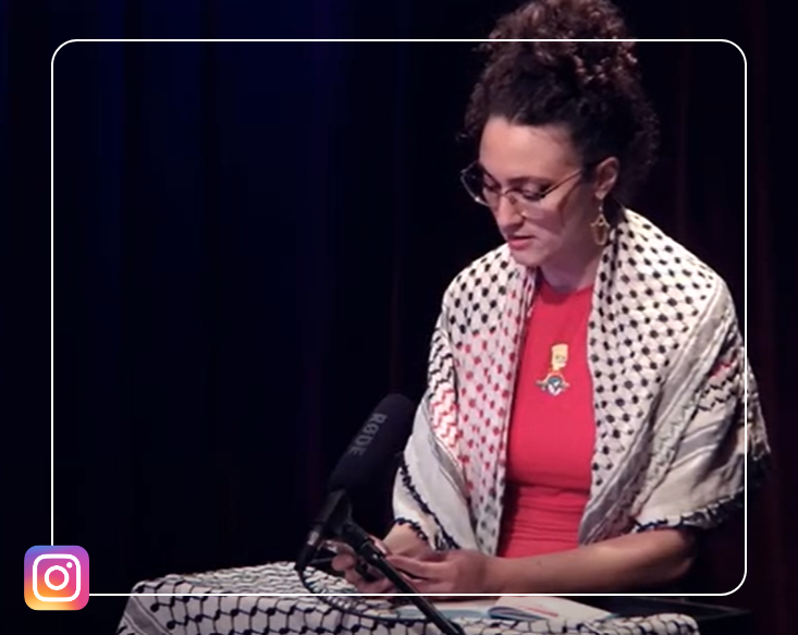 Photo credit: @beyondbaroque_: Ghada at the Beyond Baroque Literary Arts Center reading for Asian Poets & Writers in Solidarity with Gaza.