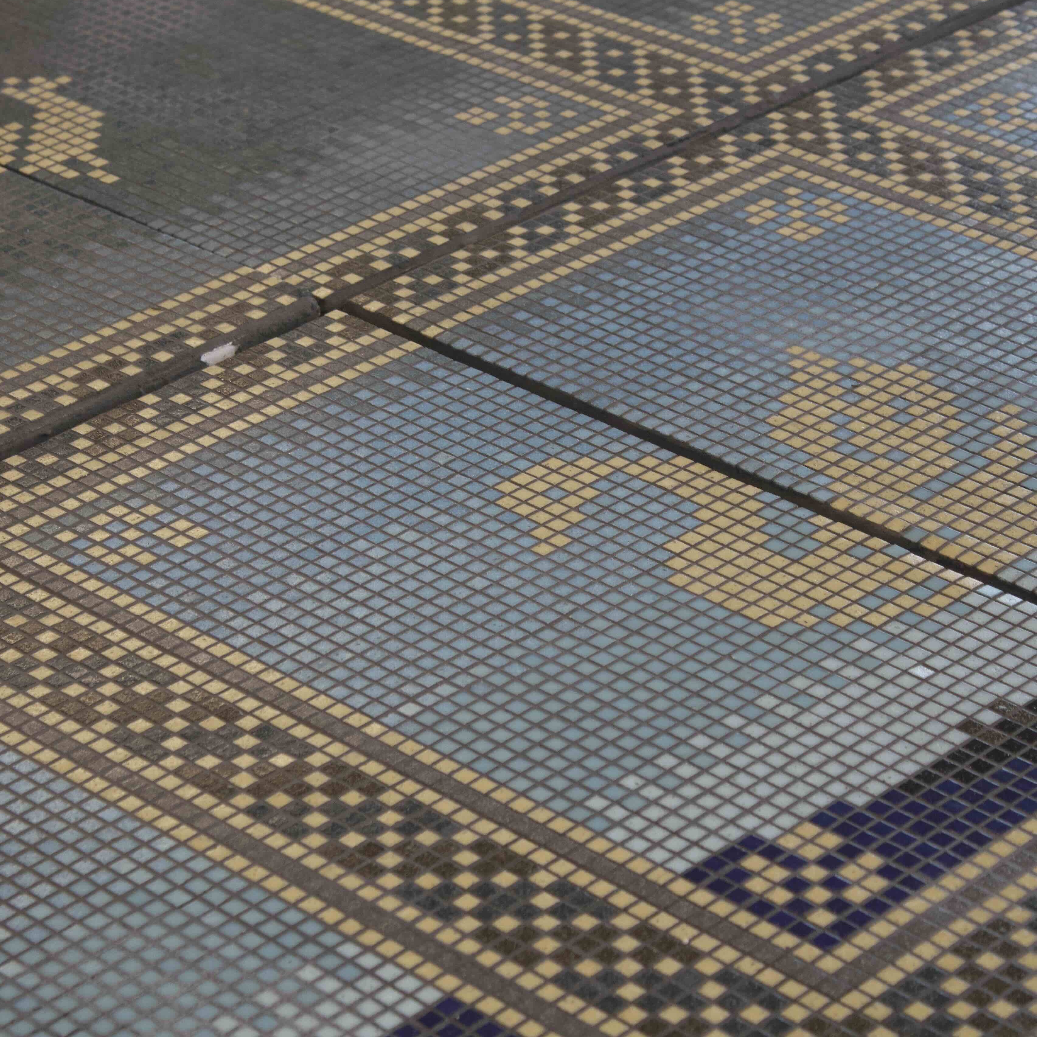 Nassar’s “At-Atlal (The Ruins)” mosaic tile piece reflective of an old mosaic floor ruin unearthed by an olive farmer in the Bureij refugee camp in Gaza.