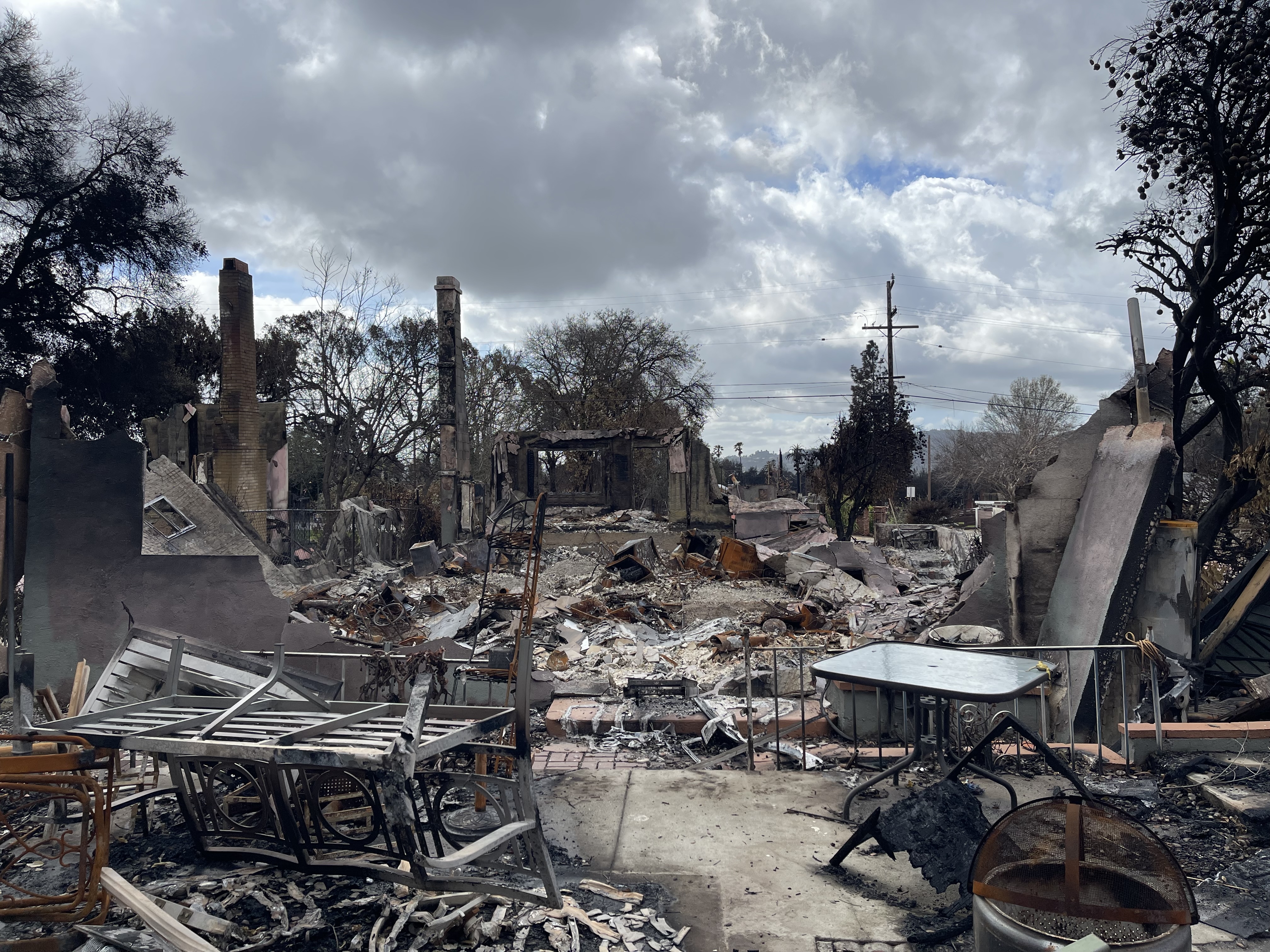 Like many of his West Mariposa Street neighbors, Ford’s chimney – although scorched – stood tall in the midst of the rubble. On the opposite side across the caved-in living room floor in what used to be his kitchen laid a charred Samsung fridge – one with a built-in tablet – and stove with a double oven that his wife loved. “She’s an awesome cook,” Ford said.
