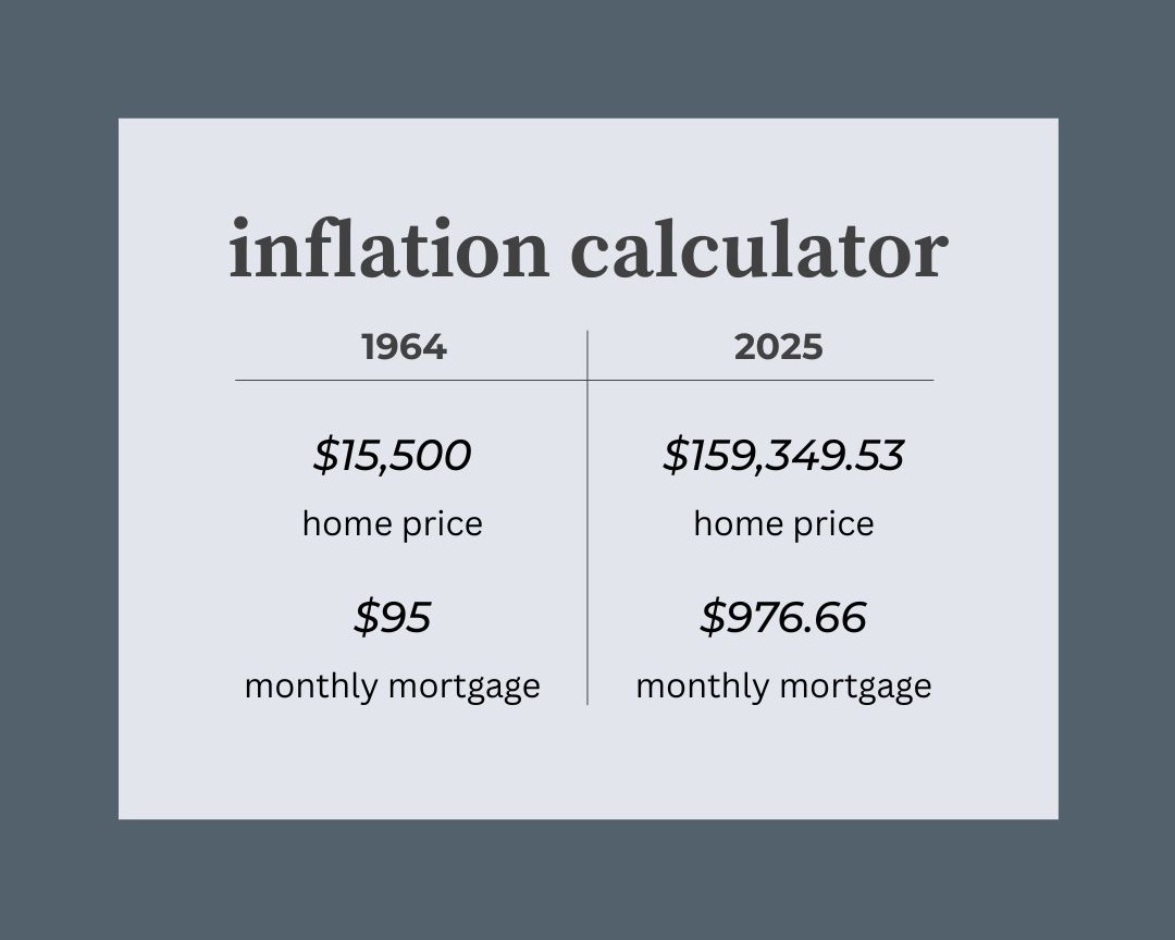Home prices in 1964 and their 2025 equivalents. Source: U.S. Bureau of Labor Statistics. (Graphic by Sheridan Hunter)