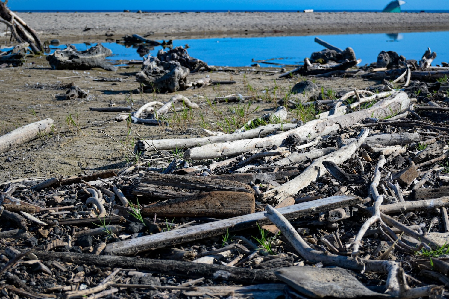Burnt wood along with other particles remain on Topanga Beach in Malibu. (Avidha Raha/USC Annenberg Media)