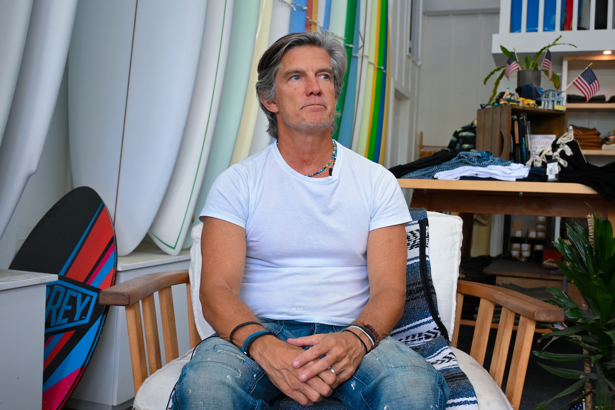 Sea N Soul surf shop owner John Kozlowski in July. (Avidha Raha/USC Annenberg Media)