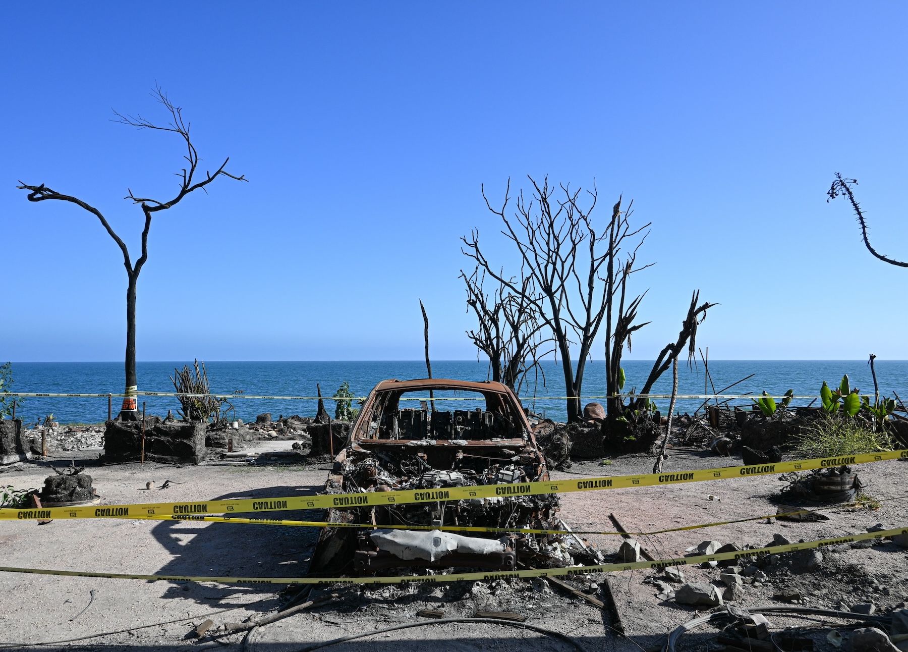 A mutilated car remains on a restricted private property along the Pacific Coast Highway in Malibu. (Avidha Raha/USC Annenberg Media)