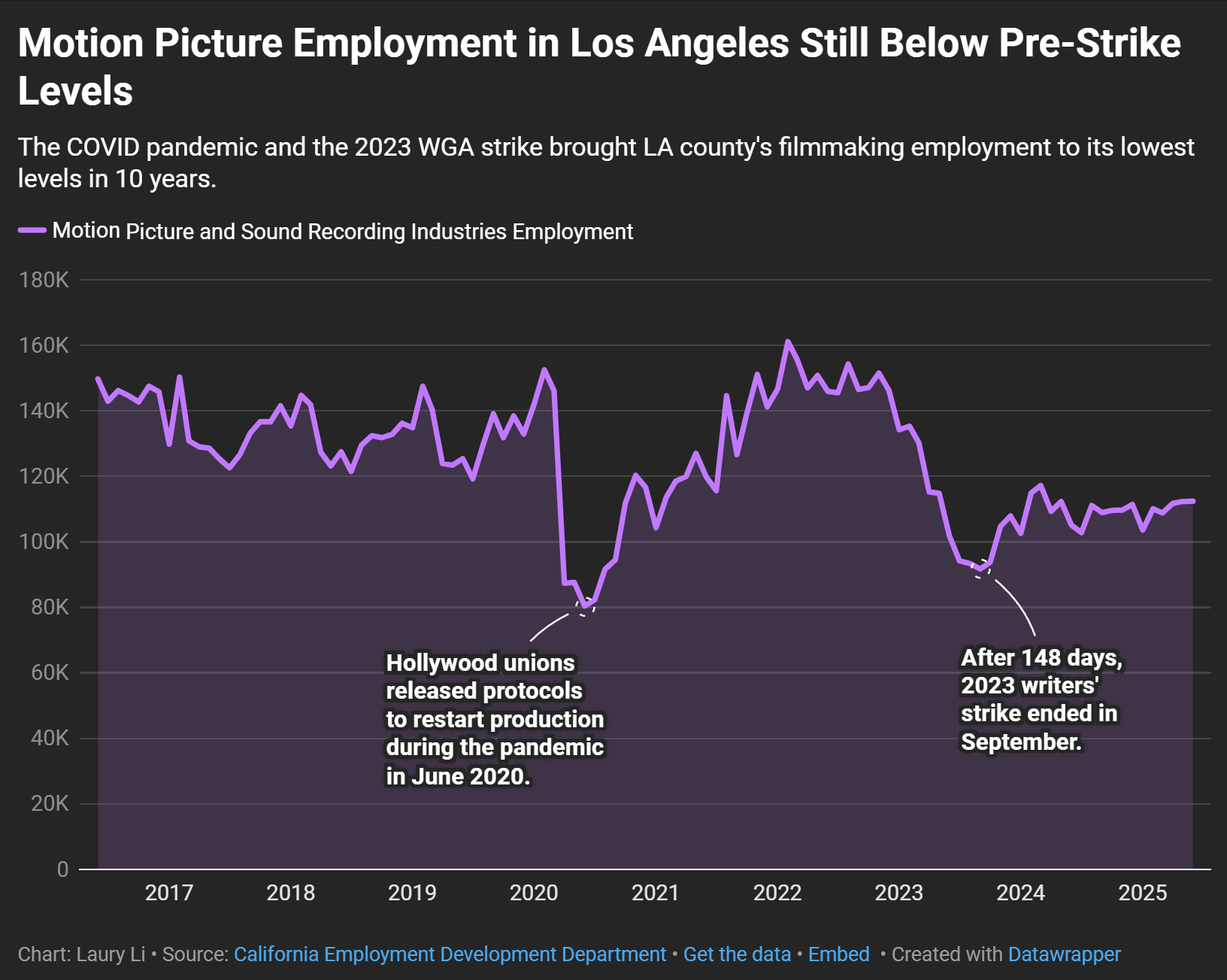 Line Chart of Monthly Film Industry Employment in LA, June 2016-June 2025